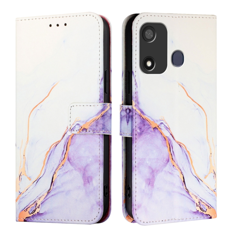 Funda de Cuero con Tapa y Diseño de Mármol para Teléfono Itel P17/A27 Pt003 (Blanco y Morado)