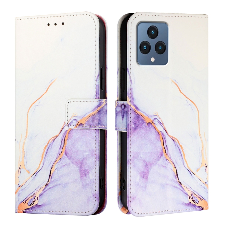 Funda de Cuero con Tapa para Teléfono T-Mobile Revvl 6X 5G Pt003 (Blanco y Morado)