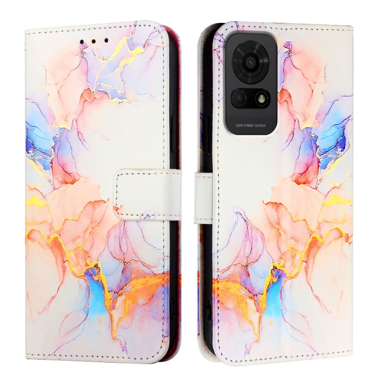 Funda de Cuero con Tapa para Teléfono Tcl 50 Le Pt003 Diseño Mármol (Blanco)