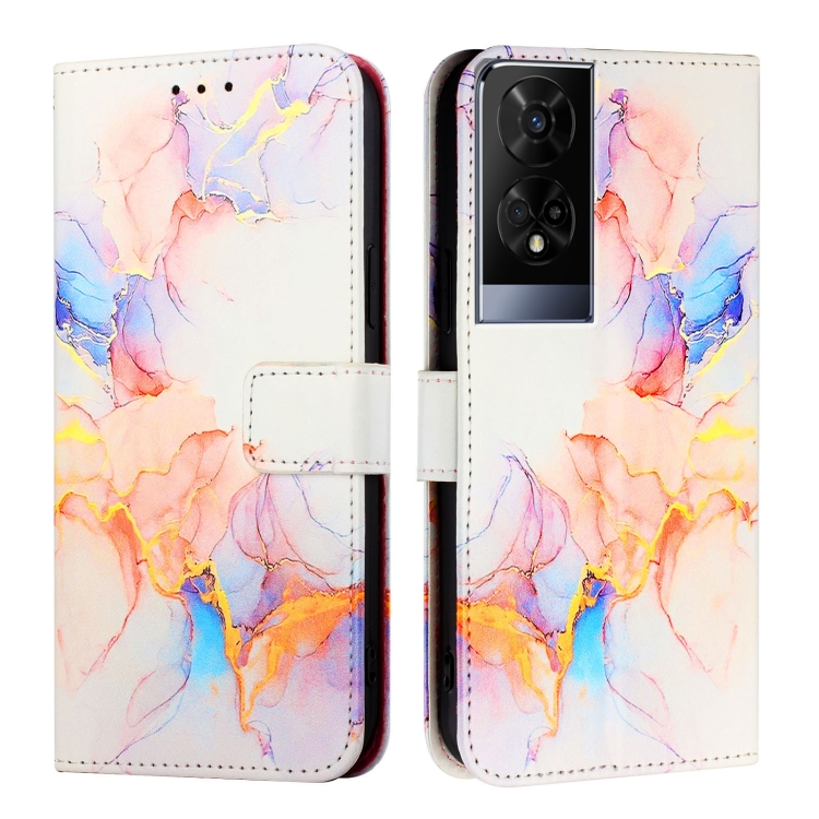 Funda de Cuero con Tapa para Teléfono Tcl 50Xe 5G Pt003 Diseño Mármol (Blanco)