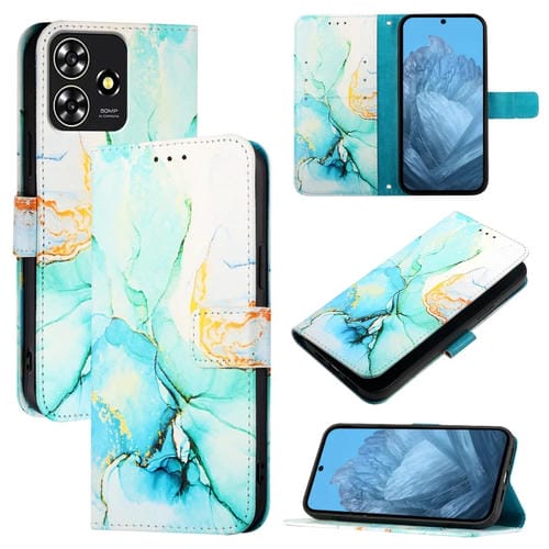 Funda de Cuero con Tapa para ZTE Blade A73 4G Pt003 con Diseño Mármol (Verde)