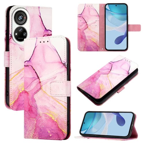 Funda de Cuero con Tapa para ZTE Blade V40S Pt003 con Diseño Mármol (Rosa, Morado y Dorado)
