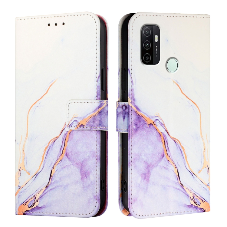 Funda de Cuero con Tapa y Diseño de Mármol Pt003 para Oppo A32 2020 4G / A53 2020 4G (Blanco y Morado)