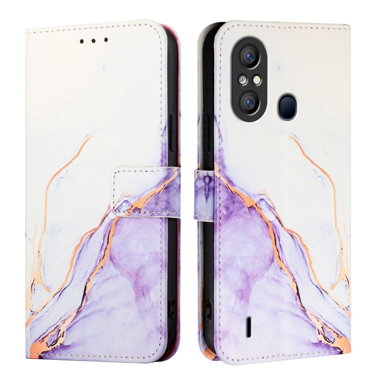 Funda de Cuero con Tapa y Diseño Mármol Pt003 para Itel A58/A49 (Blanco y Morado)