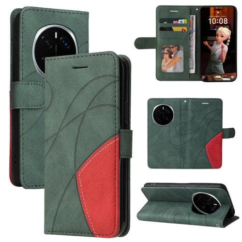 Funda de Cuero con Tapa y Dos Colores para Honor Magic7 Pro (Verde)