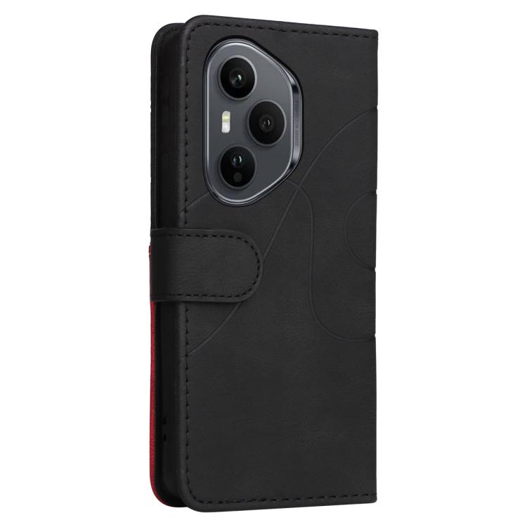 Funda de cuero con tapa y empalme bicolor para Honor 400 Pro Global (160,8 mm) (Negro)
