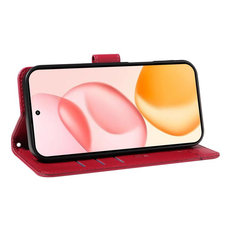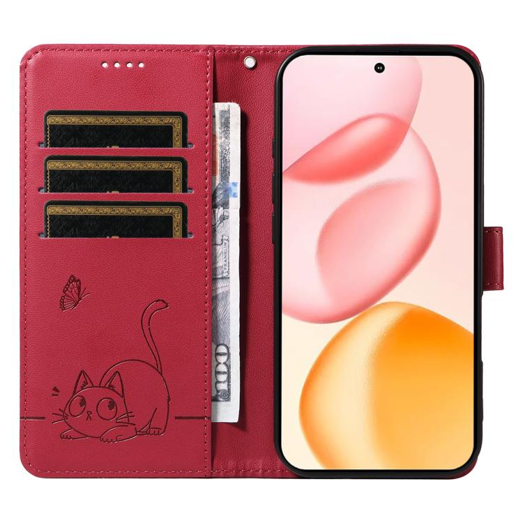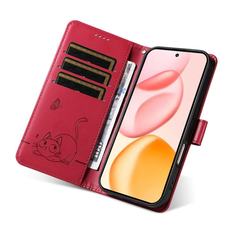 Funda de cuero con tapa y estampado de gato adorable para Honor 400 Global (156,5 mm) (Rojo)