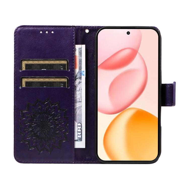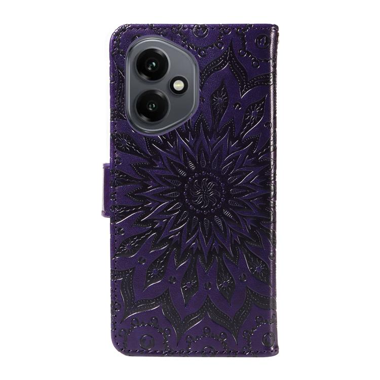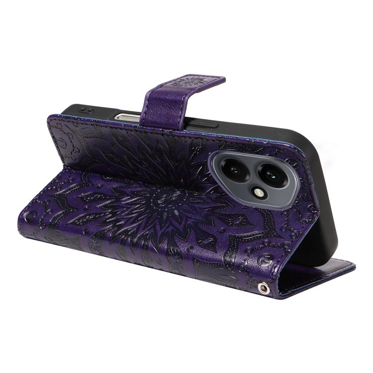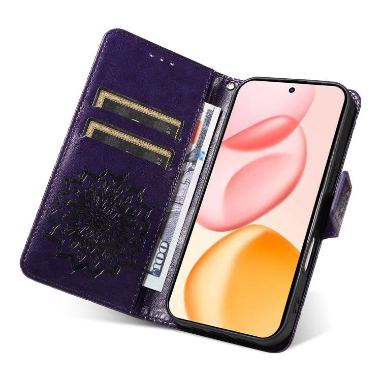 Funda de cuero con tapa y estampado de girasoles en relieve para Honor 400 Global (156,5 mm) (morado)