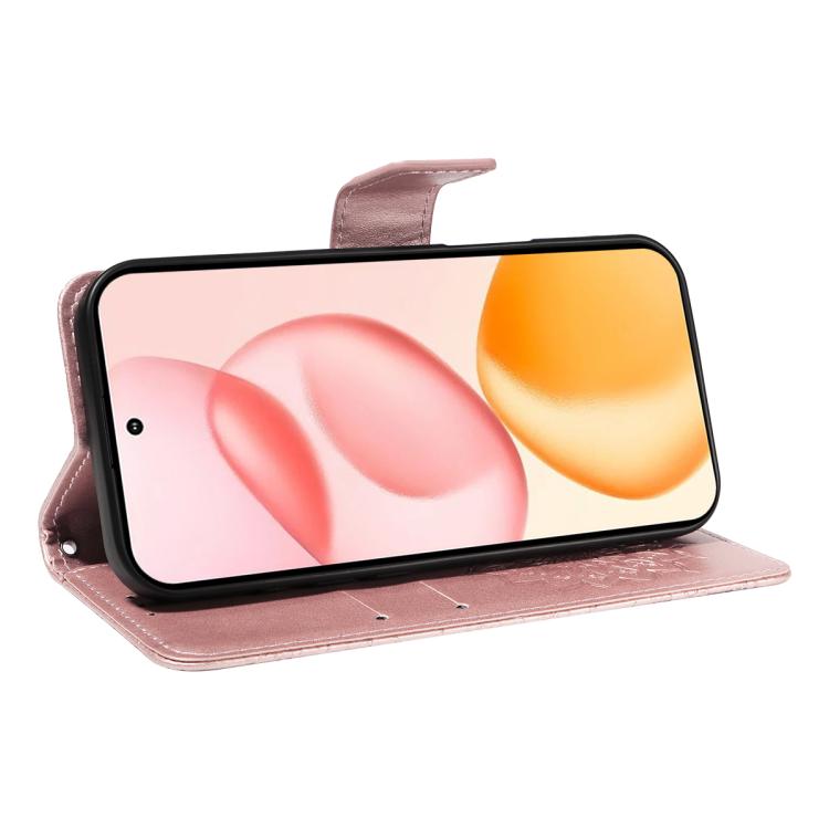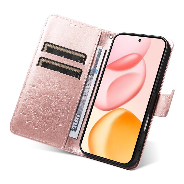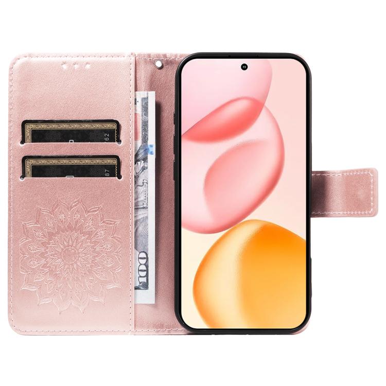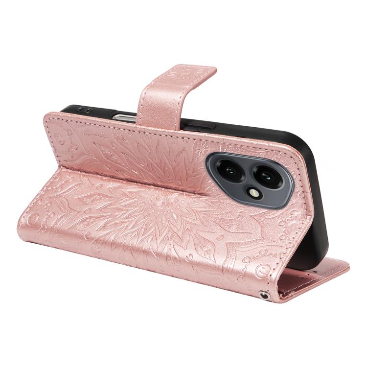 Funda de cuero con tapa y estampado de girasoles en relieve para Honor 400 Global (156,5 mm) (oro rosa)