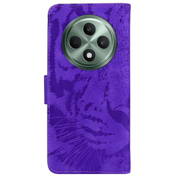 Funda de Cuero con Tapa y Estampado de Tigre para Oppo Reno12 F 5G (Morado)