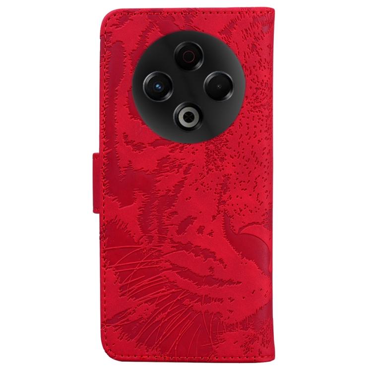 Funda de cuero con tapa y estampado de tigre para Tecno Spark 30 4G (roja)