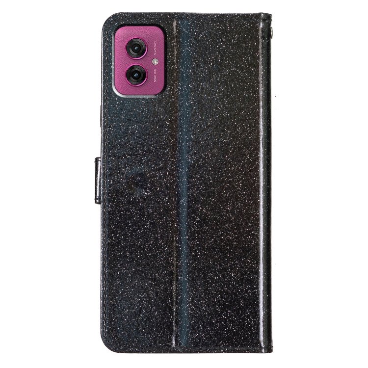 Funda de Cuero con Tapa y Purpurina para Motorola Moto G55 (Negra)