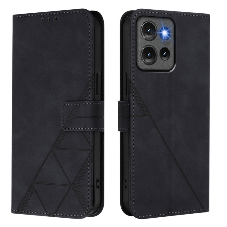 Funda de Cuero con Tapa y Relieve 3D para Motorola Edge 50 5G Global (Negra)