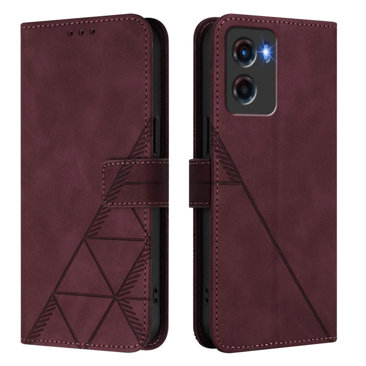 Funda de Cuero con Tapa y Relieve 3D para Motorola Moto G05 (Rojo Vino)