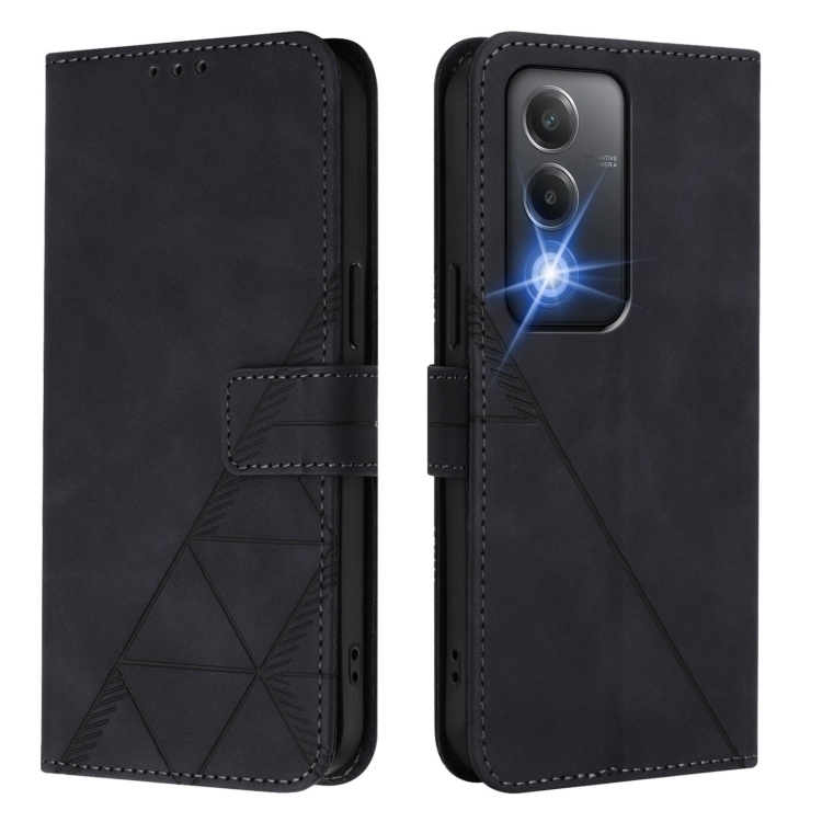 Funda de Cuero con Relieve 3D para Oppo K12X 5G Global Crossing (Negra)