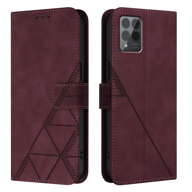 Funda de Cuero con Tapa y Relieve 3D para T-Mobile Revvl 6 Pro / 6X Pro 5G (Rojo Vino)