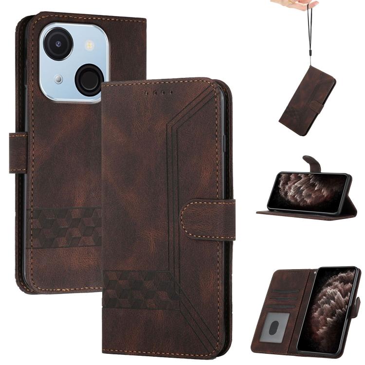 Funda de Cuero con Tapa y Tacto de Piel Cúbica para Teléfono Itel A50C (Marrón)