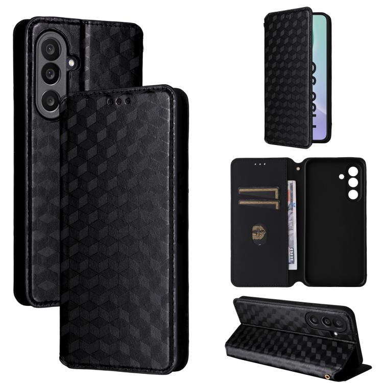 Funda de cuero con tapa y textura de cuadrícula cúbica para Samsung Galaxy M56 5G (negra)