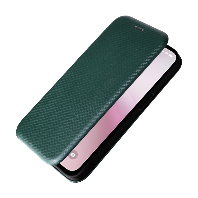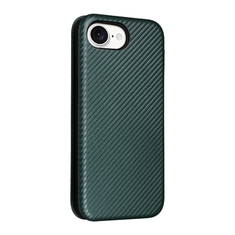 Funda de Cuero con Tapa y Textura de Fibra de Carbono para iPhone 16E (Verde)