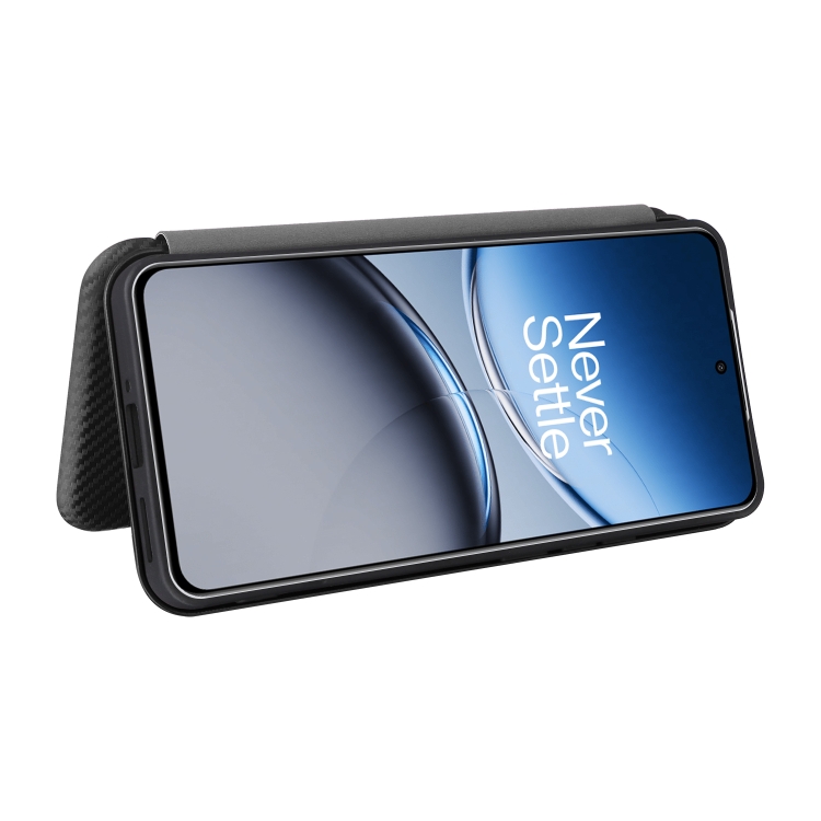 Funda de Cuero con Tapa y Textura de Fibra de Carbono para OnePlus Nord 4 5G (Negra)