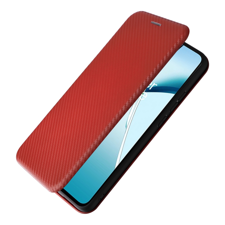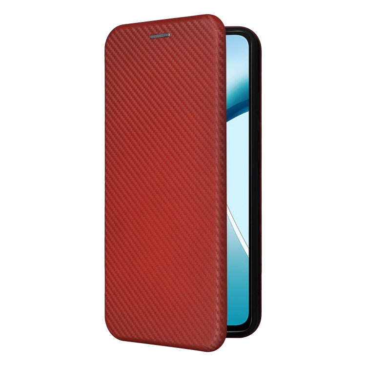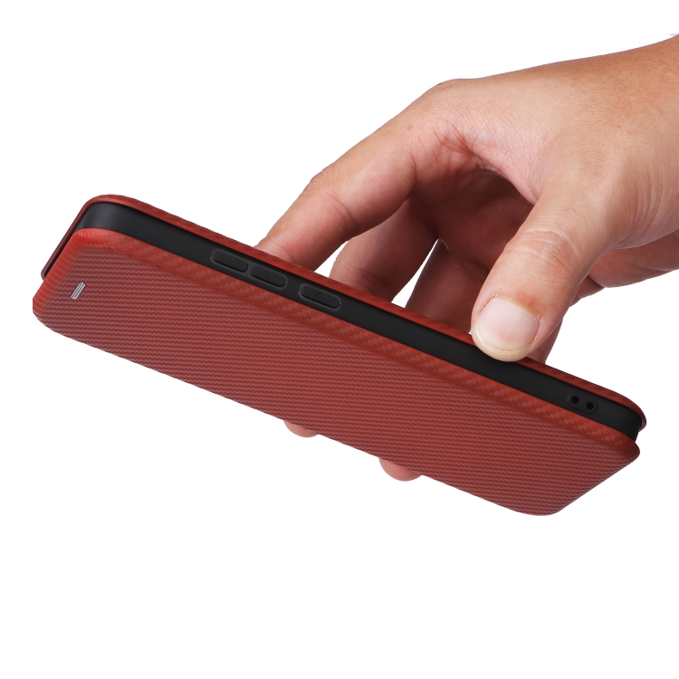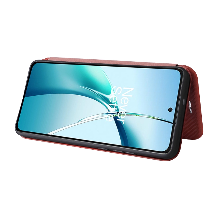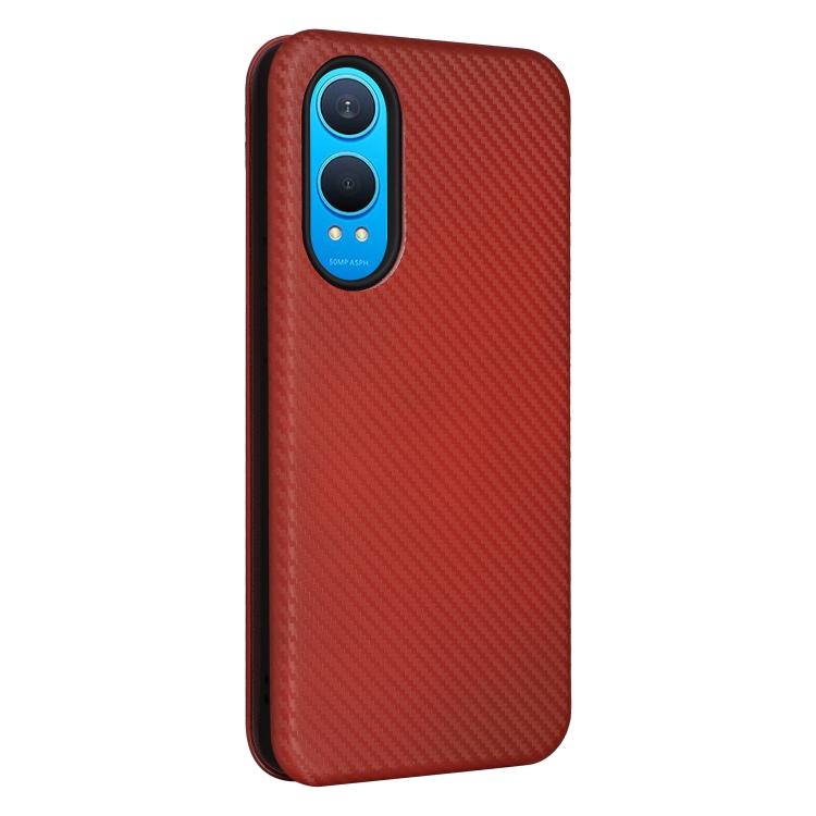 Funda de Cuero con Tapa y Textura de Fibra de Carbono para OnePlus Nord Ce4 Lite (Marrón)
