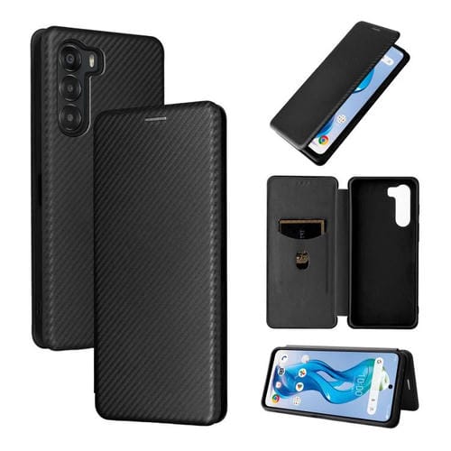 Funda de Cuero con Tapa y Textura de Fibra de Carbono para ZTE Nubia S 5G A403Zt (Negra)