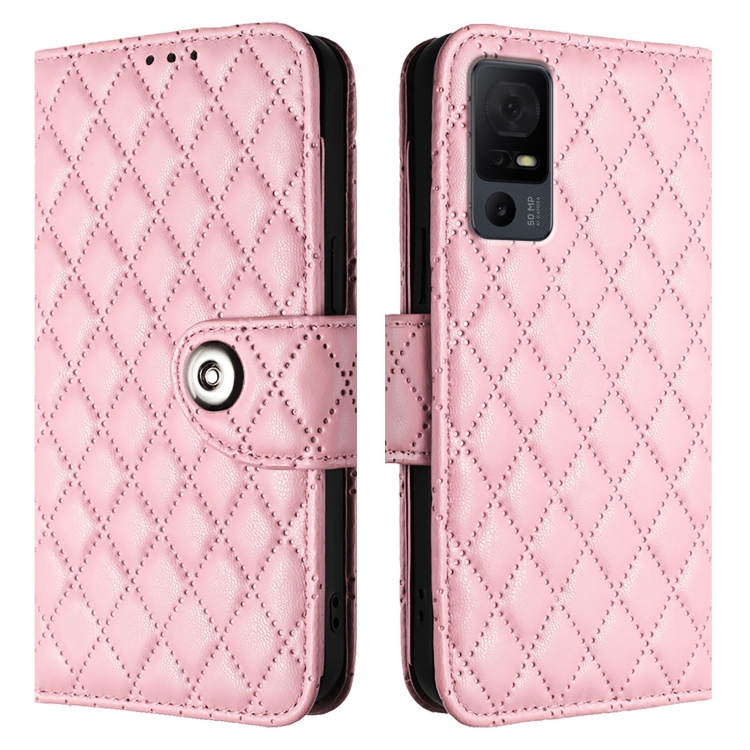 Funda de Cuero con Tapa y Textura Rombal para TCL 40 Xl/40 T T608Dl con Cordón (Rosa)