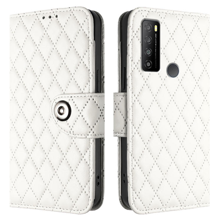 Funda de Cuero con Tapa y Textura Rombal para TCL 30 Xl T701Dl con Cordón (Blanco)