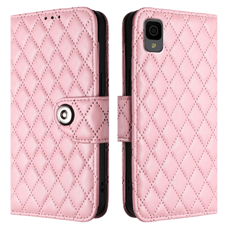 Funda de Cuero con Tapa y Textura Rombal para Teléfono TCL 30Z T602Dl con Cordón (Rosa)