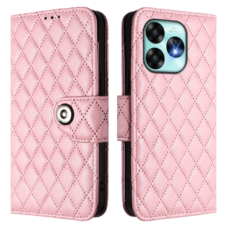 Funda de Cuero con Tapa y Textura Rombal para Umidigi A15/A15C/A15T con Cordón (Rosa)