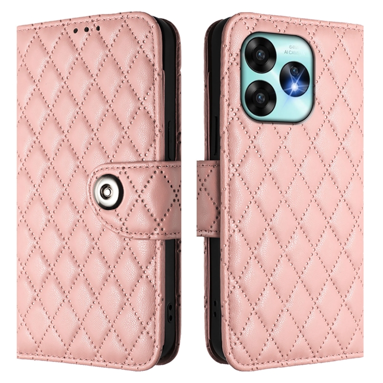 Funda de Cuero con Tapa y Textura Rombal para Teléfono Umidigi A15/A15C/A15T con Cordón (Rosa Coral)