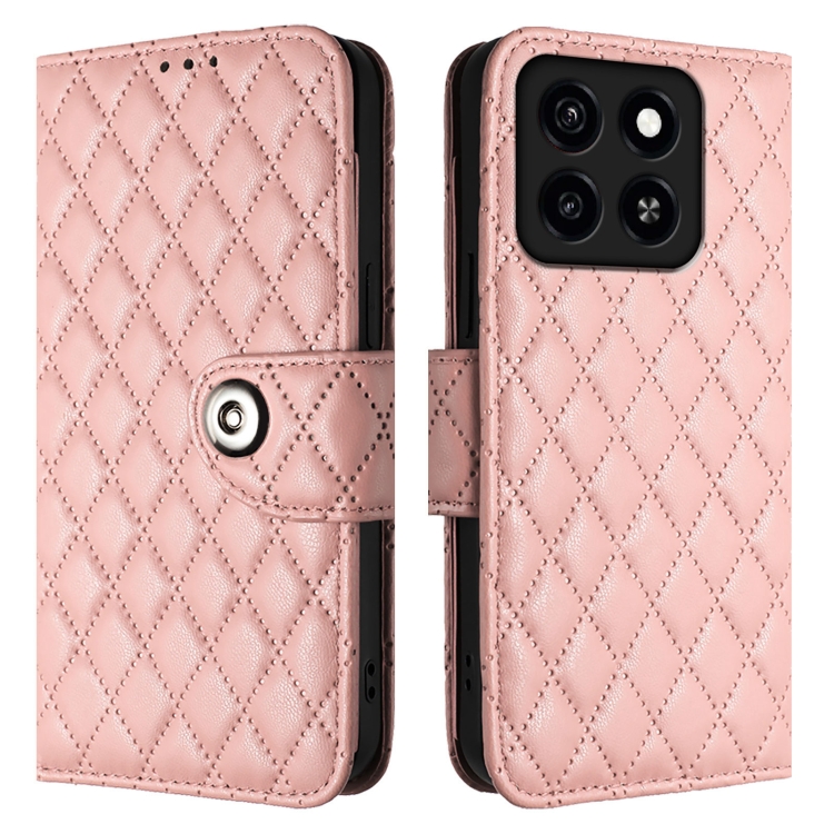Funda de Cuero con Tapa y Textura Rombal para ZTE Blade A35/A55 con Cordón (Rosa Coral)