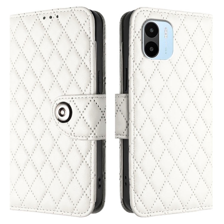 Funda de Cuero con Tapa y Textura Rómbica para Redmi A1/A2 (Blanca)