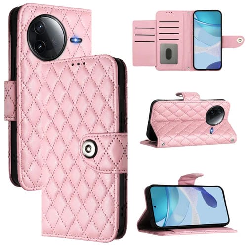 Funda de Cuero con Tapa y Textura Rómbica para Redmi K80 5G/K80 Pro 5G con Cordón (Rosa)