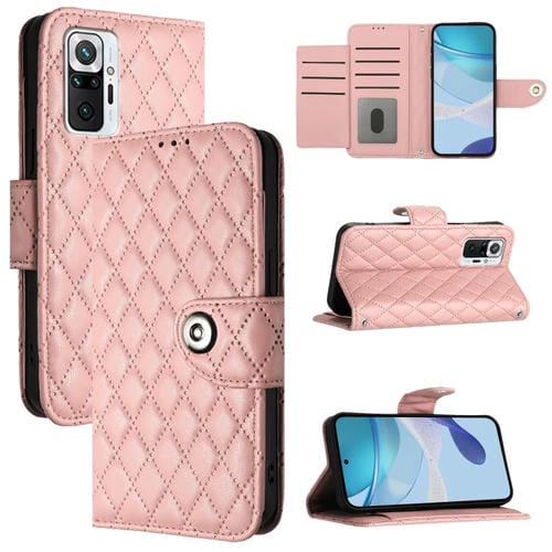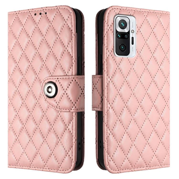 Funda de Cuero con Tapa y Textura Rómbica para Redmi Note 10 Pro, con Cordón (Rosa Coral)