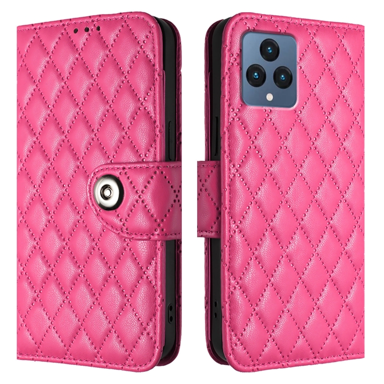 Funda de Cuero para Teléfono T-Mobile Revvl 6/6X 5G con Tapa y Textura Rómbica (Rosa Rojo)