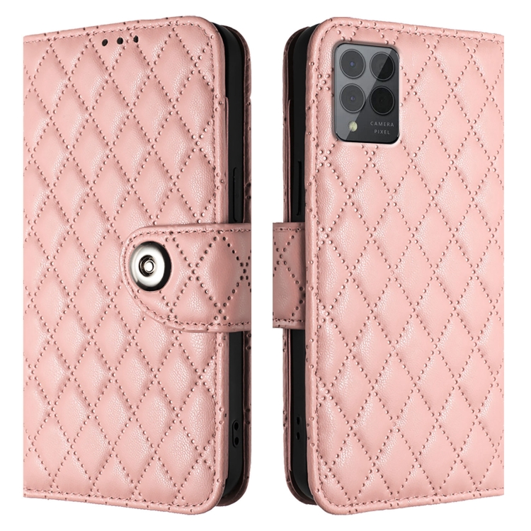 Funda de Cuero con Tapa y Textura Rómbica para T-Mobile Revvl 6 Pro / 6X Pro 5G con Cordón (Rosa Coral)