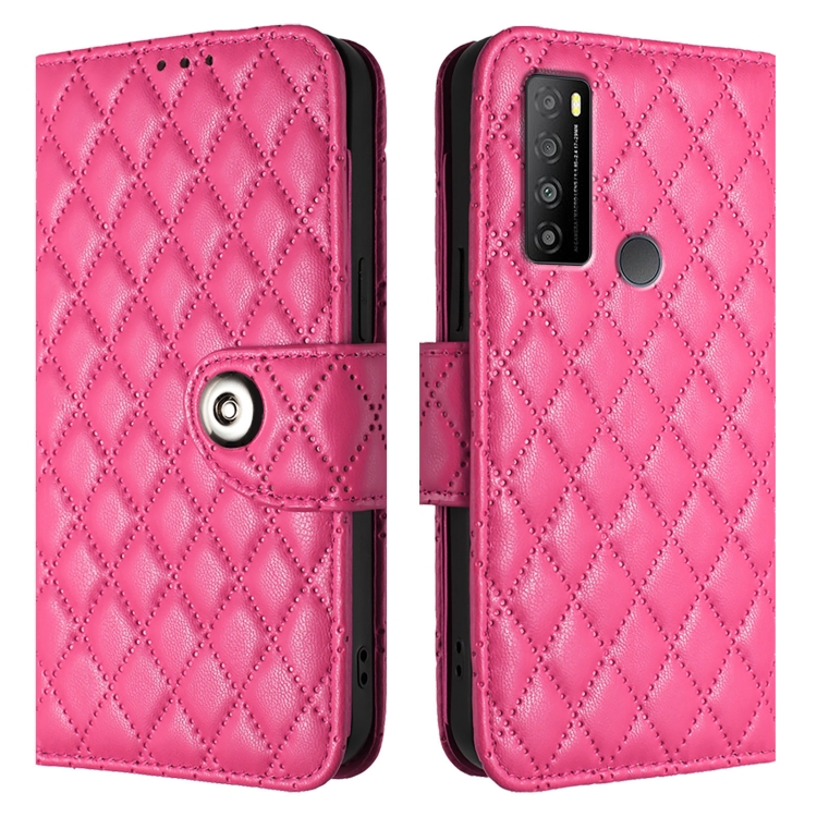 Funda de Cuero con Tapa y Textura Rómbica para TCL 30 Xl T701Dl con Cordón (Rosa y Rojo)