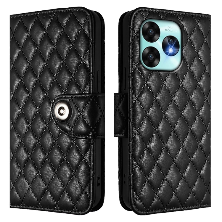 Funda de Cuero con Tapa y Textura Rómbica para Teléfono Umidigi A15/A15C/A15T con Cordón (Negro)