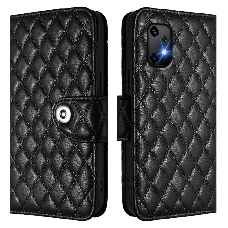 Funda de Cuero para Teléfono Umidigi Bison X20 con Tapa Textura Rómbica y Cordón (Negro)