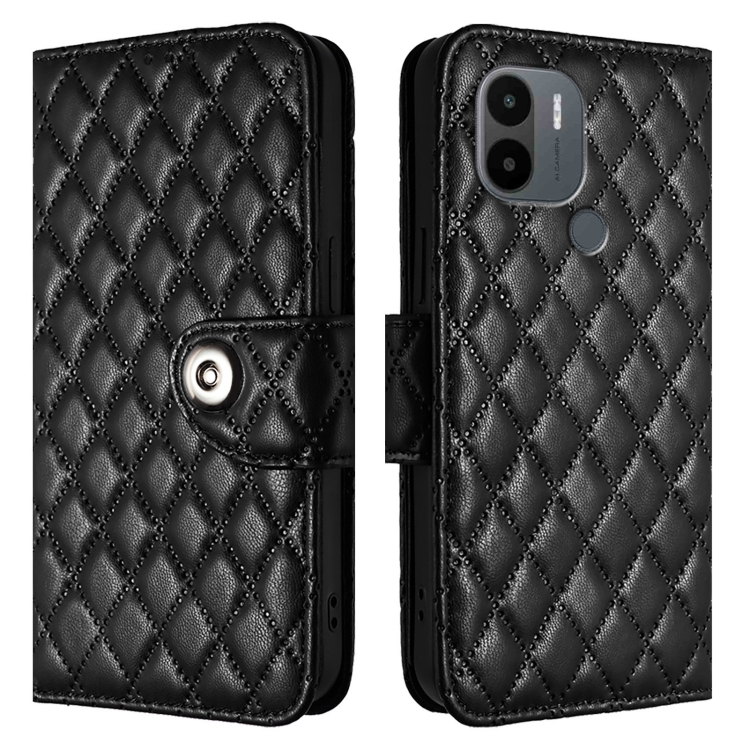 Funda de Cuero con Tapa y Textura Rómbica para Xiaomi Poco C51/C50 con Cordón (Negro)