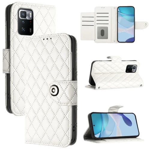 Funda de Cuero con Tapa y Textura Rómbica para Xiaomi Poco X3 Gt con Cordón (Blanco)