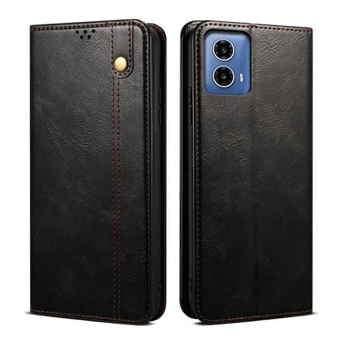 Funda de Cuero Crazy Horse con Cera de Aceite para Motorola Moto G34 5G/G45 5G (Negra)
