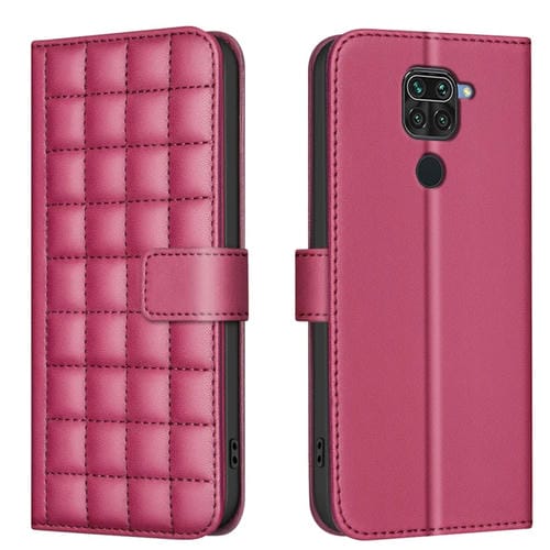 Funda de Cuero con Textura Cuadrada para Redmi 10X 4G/Note 9 (Rojo)