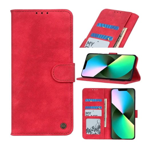 Funda de Cuero con Textura de Antílope para iPhone 14 (Rojo)
