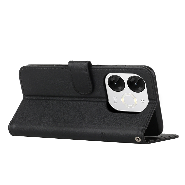 Funda de Cuero Textura Becerro con Costuras para Teléfono Itel A80 (Negro)