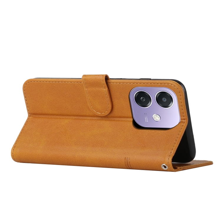 Funda de Piel con Textura de Becerro y Hebilla para Oppo A3X (Amarilla)