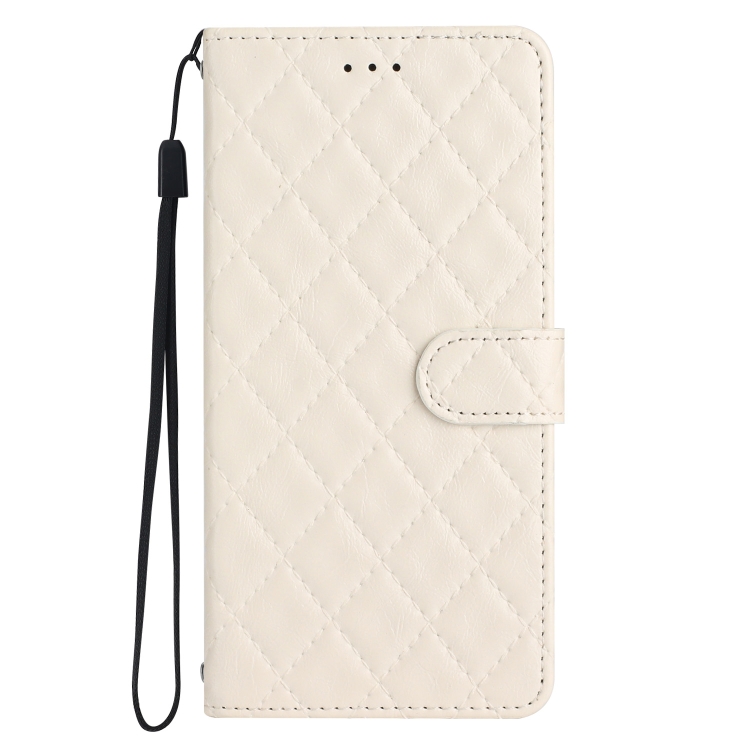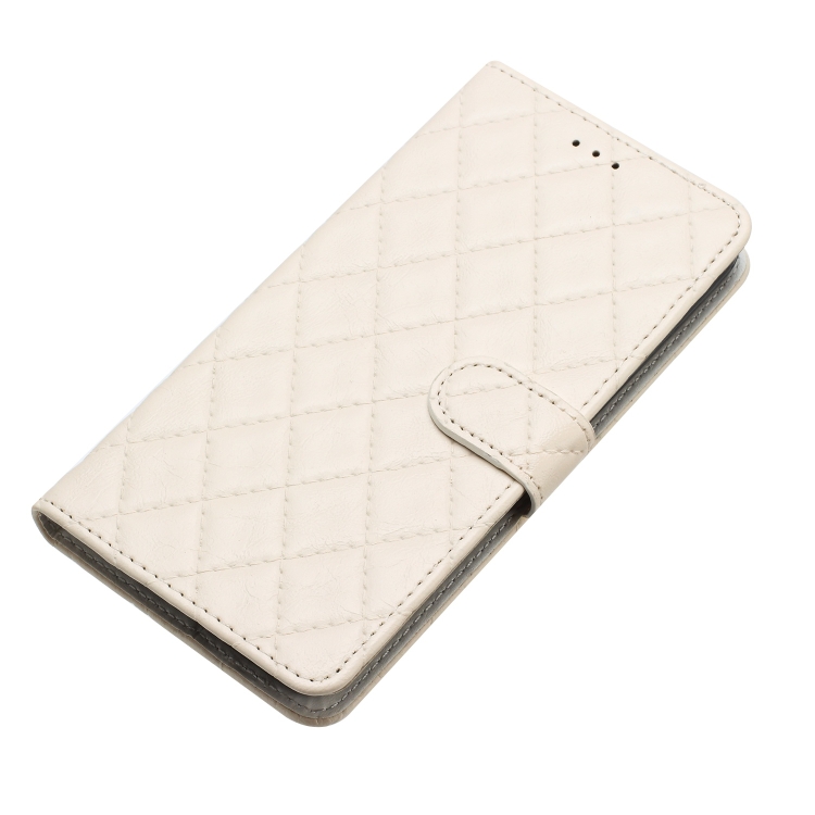 Funda de Cuero para iPhone 16 Pro Max con Textura de Celosía y Rombos (Blanca)