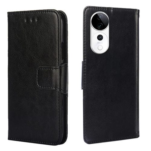 Funda de Cuero con Textura de Cristal para Teléfono Vivo S19 Pro (Negra)