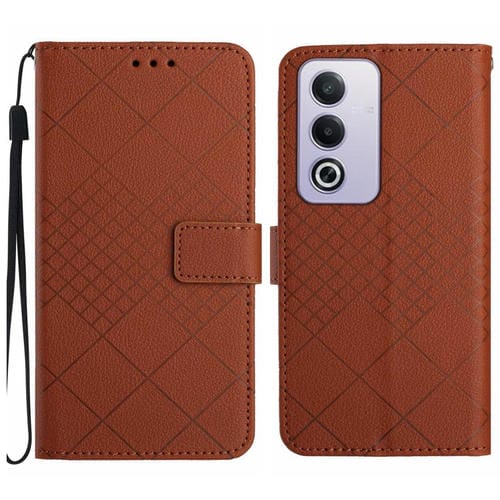 Funda de Cuero con Textura de Cuadrícula Rómbica para Oppo A3 Pro 5G India/K12X 5G Global (Marrón)